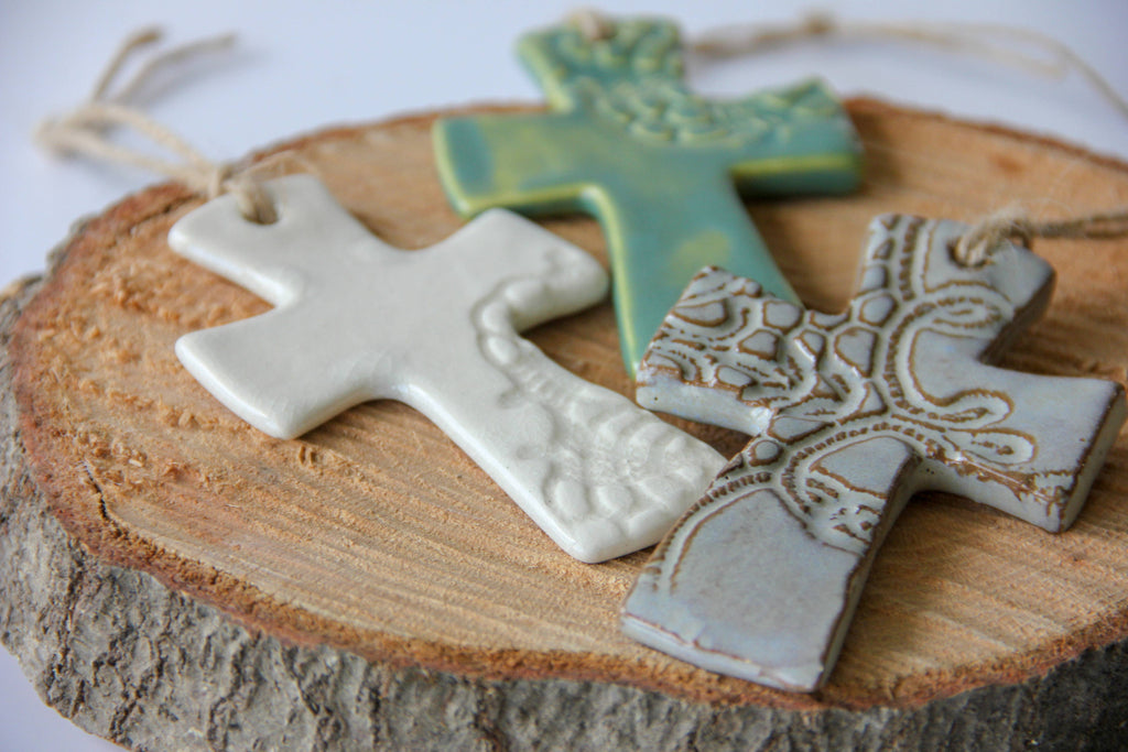 These sweet cross ornaments are perfect to hang on the Christmas tree, tie to a gift, or hang in your window. These precious, handmade crosses are pressed with lace to create unique and beautiful patterns, and are sure to make you and your loved ones smile!